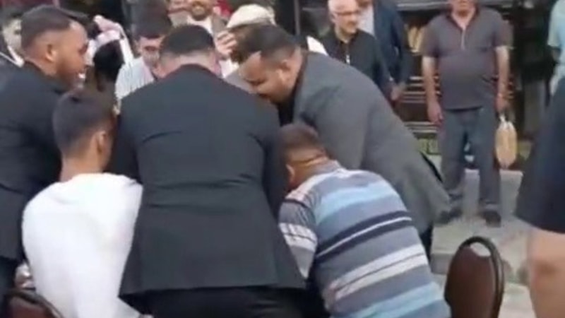 Konvoydaki vatandaşların cep telefonuyla kaydettiği görüntülerde, gençlerin eğlenceli anlar eşliğinde bahşiş aldığı görülüyor.
