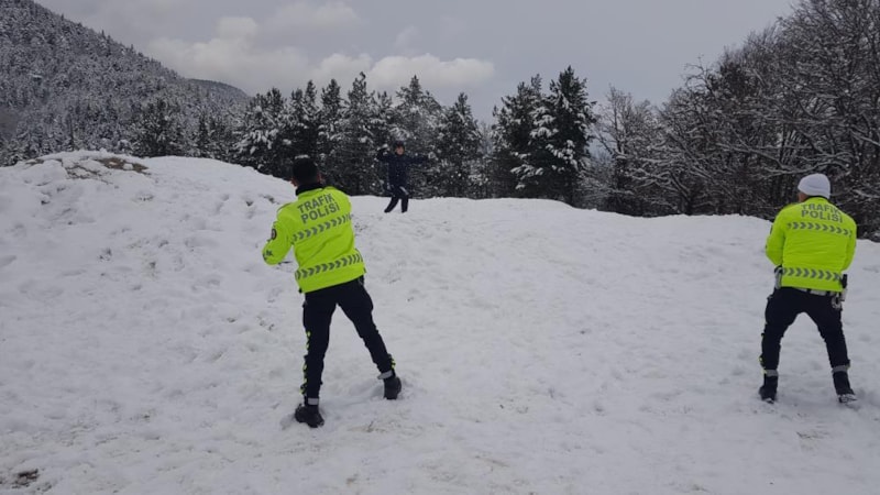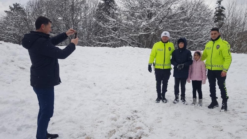Polislere teşekkür eden 12 yaşındaki Görkem Balık, "Kar topu oynarken polis ağabeyler geldi, bize katıldılar. Çok eğlendik." diye konuştu.