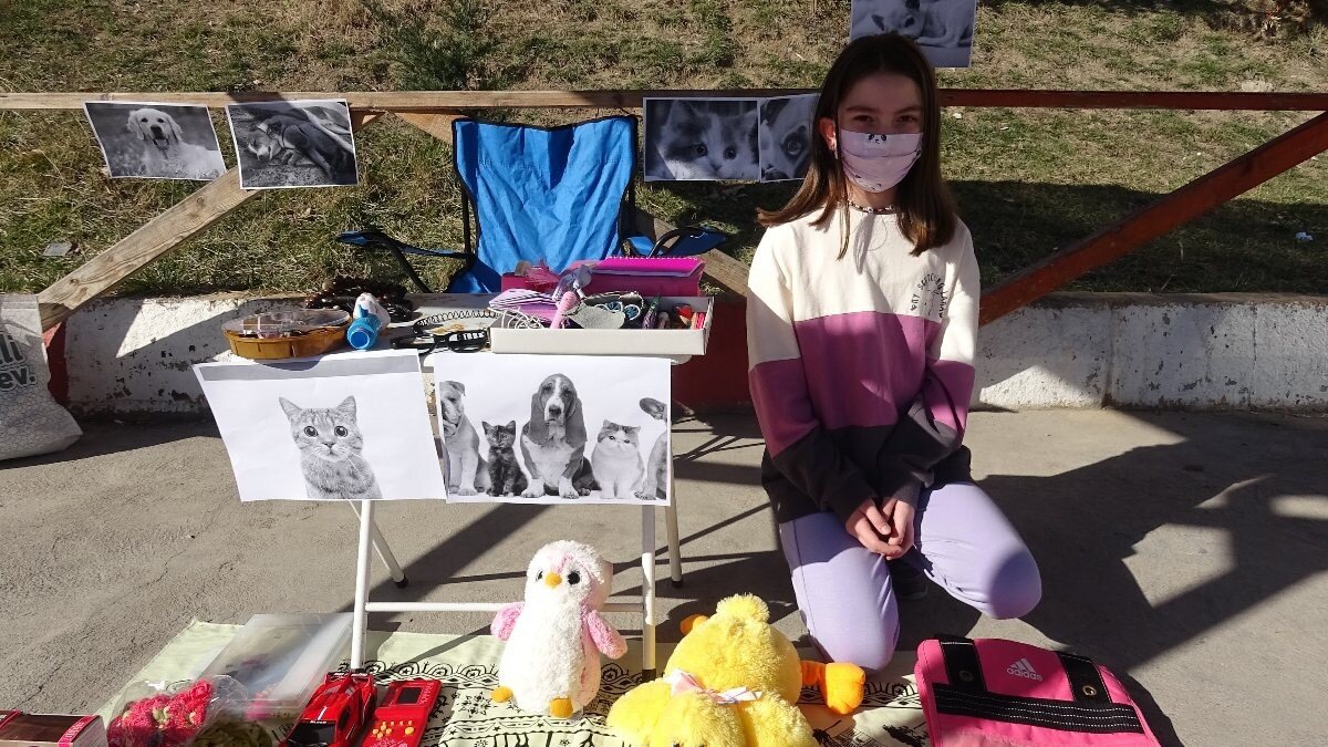 Karabük'teki 75. Yıl Mahallesi’nde oturan 10 yaşındaki İpek Uluyurt, kış şartlarında zorlandıklarını gördüğü sokak hayvanlarına yardım etmek için evinin yakınındaki parkta tezgah açtı.