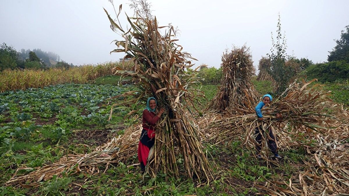 AA'nın haberine göre; yağmur ve sisli havaya aldırış etmeden günün ilk ışıklarıyla kollarını sıvayan kadınlar, işe mısır saplarını biçerek başlıyor. Ardından da biçtikleri saplardan halk arasında "horom" diye tabir edilen yığınlar oluşturan kadınlar, süreçte yoğun çaba sarf ediyor.