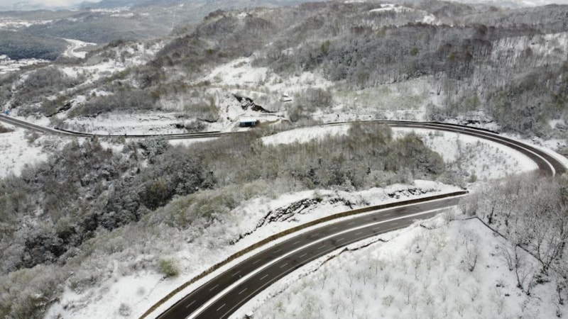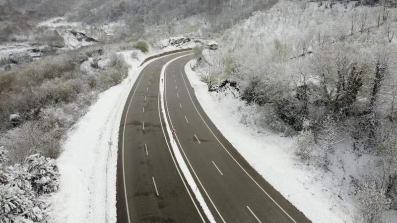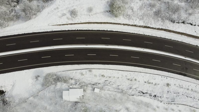 Beyaza bürünen yol drone ile görüntülendi ve eşsiz görüntüler ortaya çıktı.