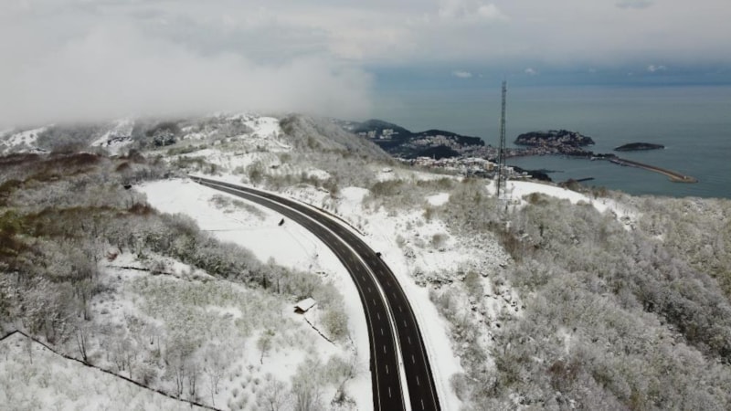 Araçlarıyla Karadeniz sahil yolunu kullanan vatandaşlar; kestane, kayın, gürgen ve meşe ağaçlarından oluşan ormanların arasında kıvrılıp uzayan karayolu ağı boyunca kar manzaralarının sunduğu görsel şölene şahit oluyor.