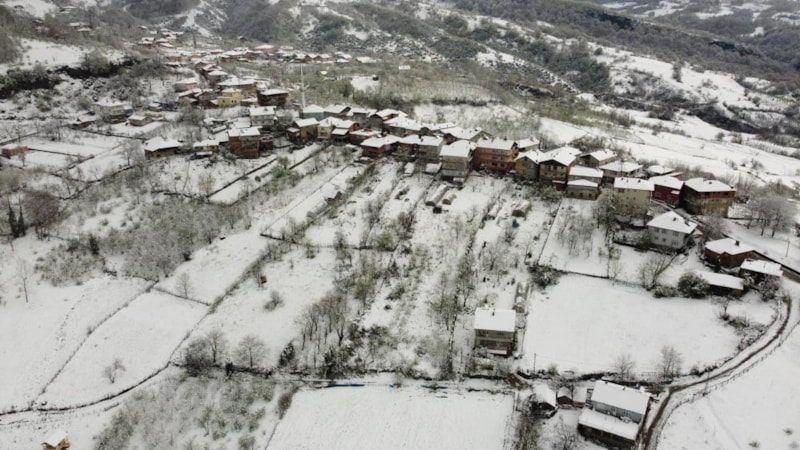 Sahil yolunun çevresinde kalan köylerde de kar manzaraları tabloluk görüntüler oluşturuyor.