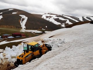 Yer yer 5 metrelik küp halinde olan karı temizleyen ekipler, Karadeniz yaylalarını şenlikler için yaza hazırlıyor.