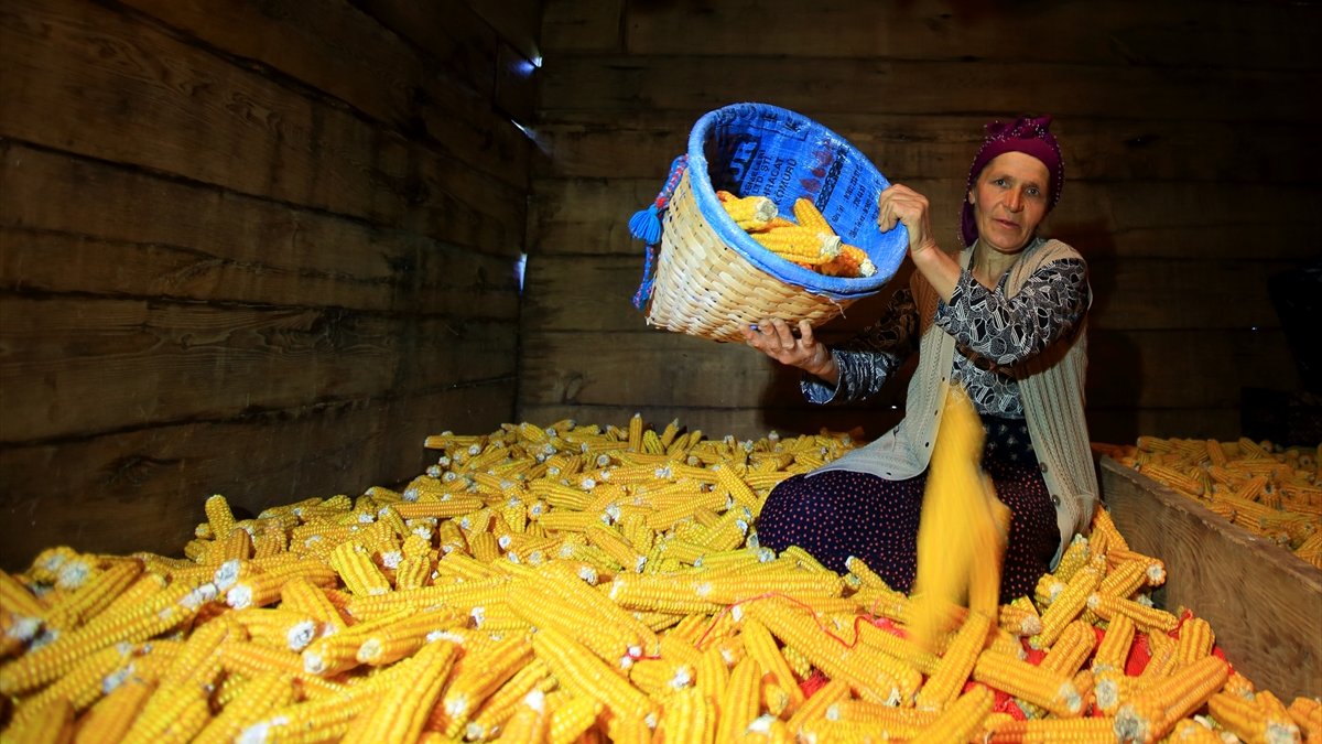 İlçeye bağlı Karşular Mahallesi'nde yaşayan Şükran Küçük, mısır, patates ve fasulyenin bozulmaması için farklı şekillerde saklandığını söyledi.