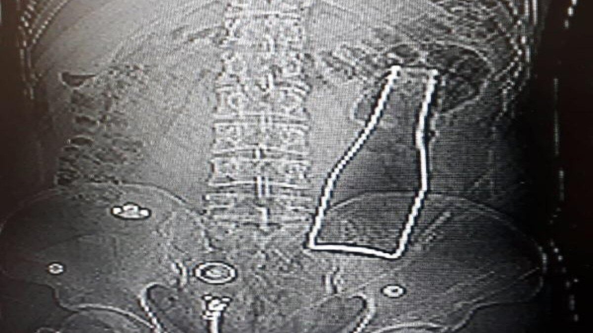Çekilen röntgen filminde, A.E.'nin kalın bağırsağının bulunduğu bölgede şişe olduğu tespit edildi.