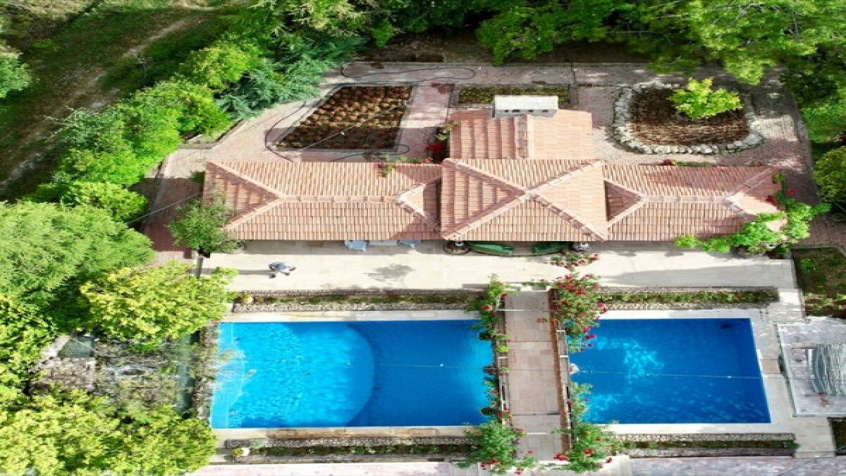 Bahçede suni gölet, havuz, mini şelale ve rengarenk çiçekler de dikkati çekiyor.