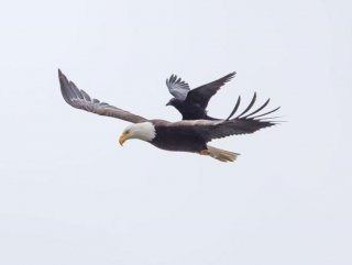 Kartalımız kargayı dikkatine layık bulmadan uçmaya devam ediyor. (Fotoğraf: Phoo Chan, Media Drum World)