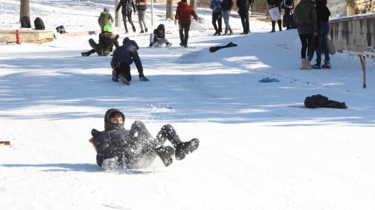 Karaman'da yoğun kar yağışının tadını yine çocuklar çıkardı. Çocuklar ve aileleri okulların kapanmasının ardından öğle saatlerinde, kayak yapmak için Karaman Kalesi'ne koştu.
