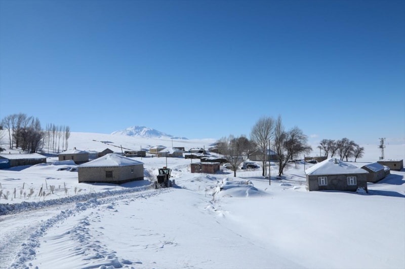 Kameralara yansıyan Süphan Dağı eteklerinde etkili kar yağışı sonucu yollar kapandı.