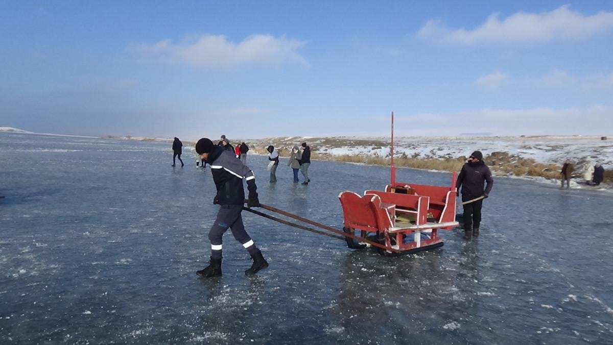 Gölün buzla kaplanmasıyla kızak kayanlara ve at arabalarına gün doğdu.