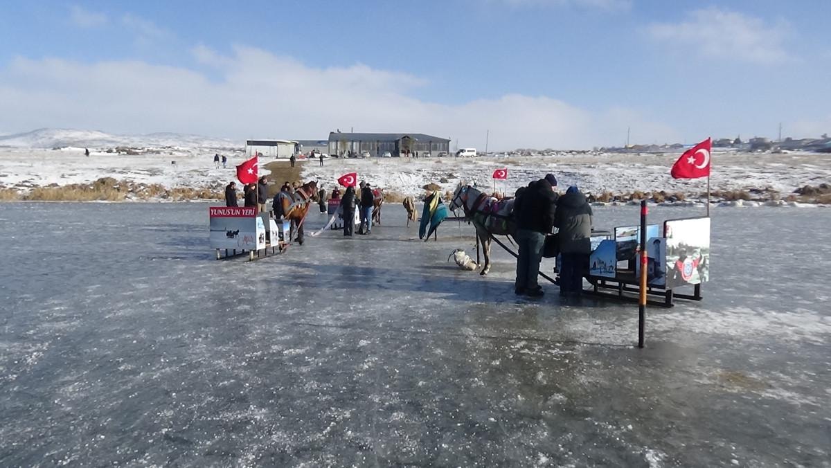 Türkiye'nin doğusunda yer alan ve yüzeyi kısmen buzla kaplanan Kars Çıldır Gölü'nde atlı kızak seferleri başladı.