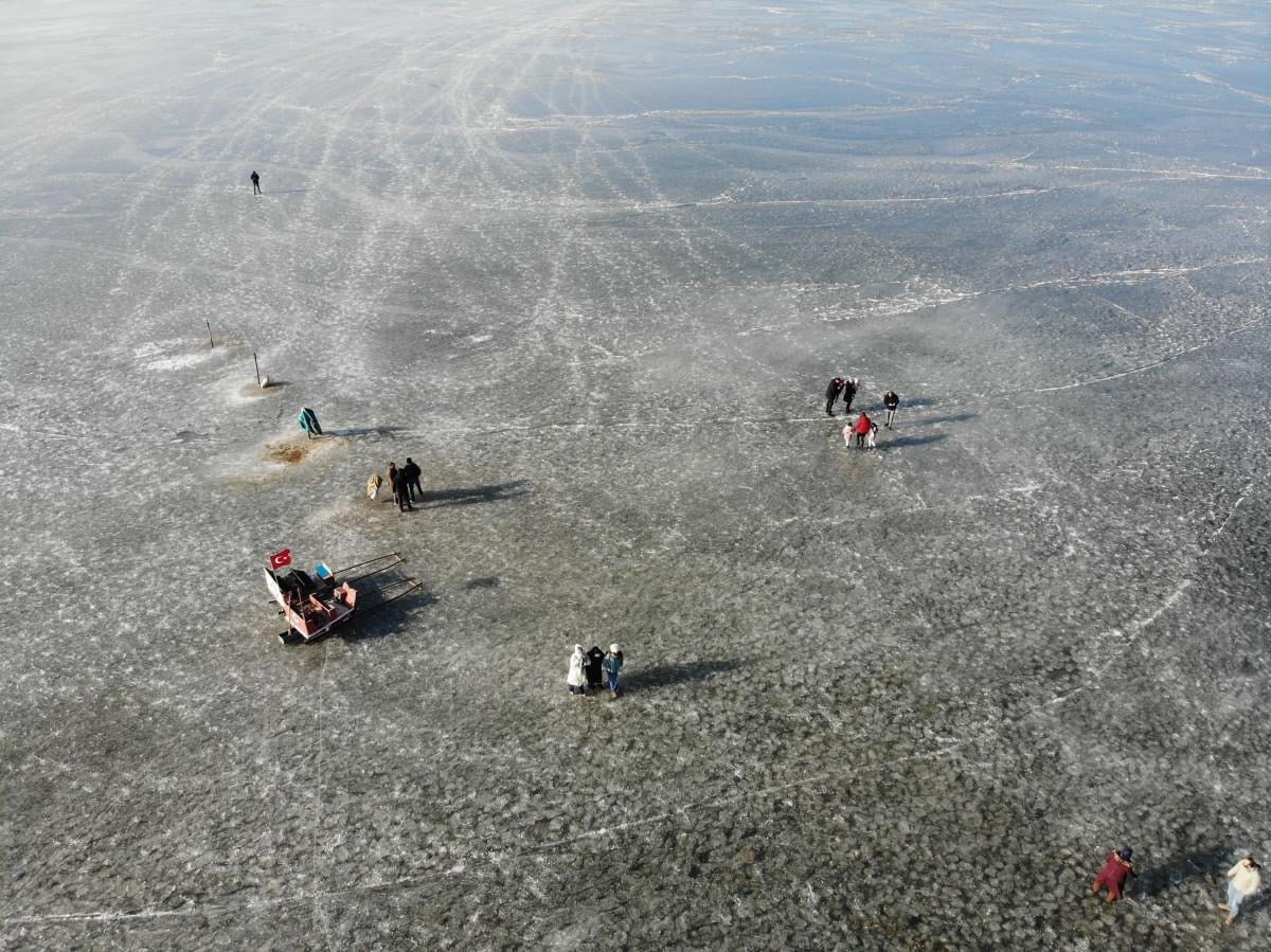 Köylülerin geleneksel yöntemlerle sürdüğü atlı kızaklar, atların nal sesleri ve kızakların buz üzerinde süzülüşüyle, buzların çatlama sesi ise ilk kez buz üzerinde atlı kızakla gezenlere adrenalin dolu anlar yaşatıyor.