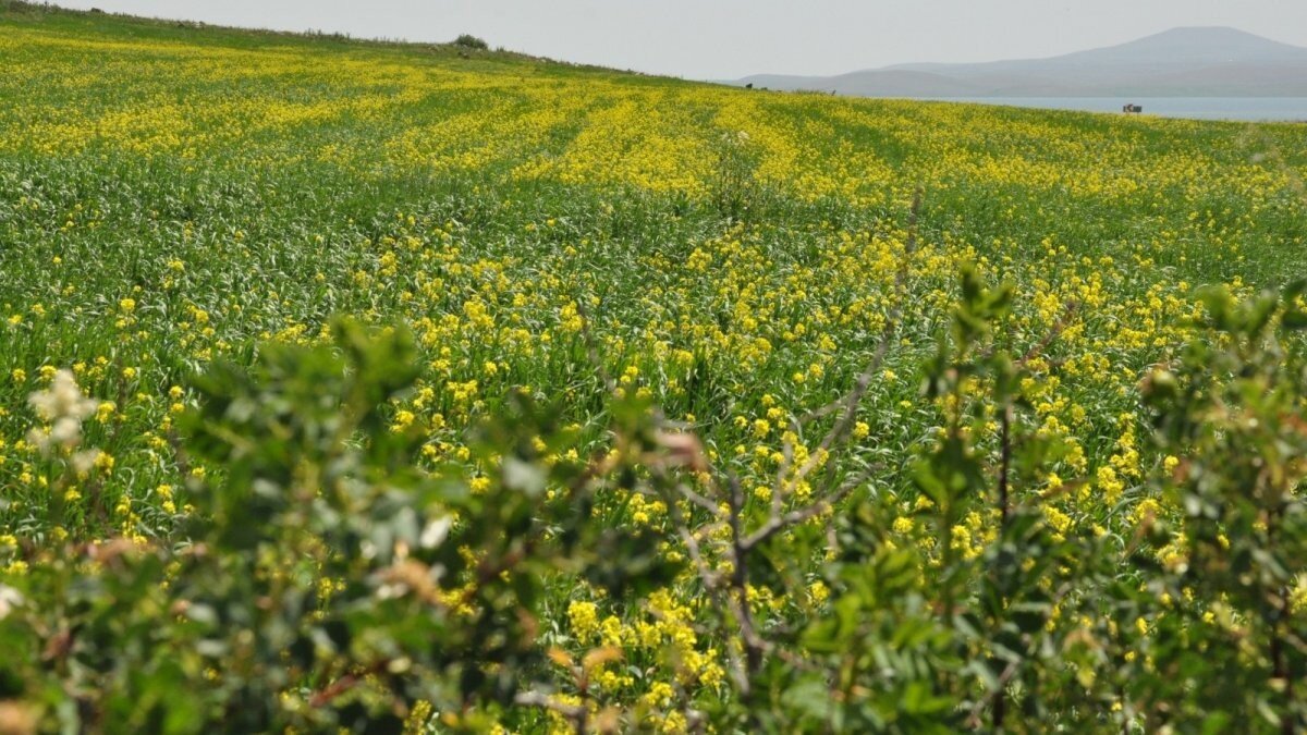 Kars’ın Arpaçay ilçesine bağlı Doğruyol köyünde tarlaları adeta bir çarşaf gibi örten sarı çiçekler, kartpostallık görüntüler ortaya çıkardı.