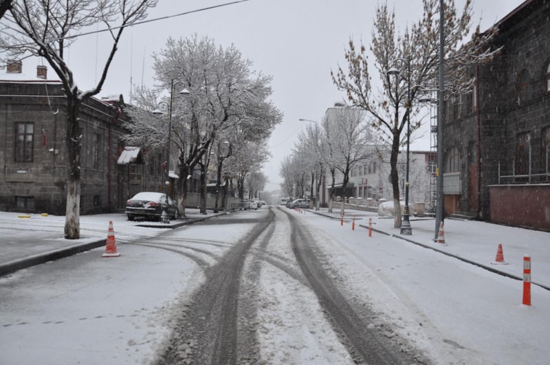 Öte yandan kar yağışıyla birlikte cadde ve sokakların beyaza büründüğü Kars’ta, soğuk havada etkili oldu.