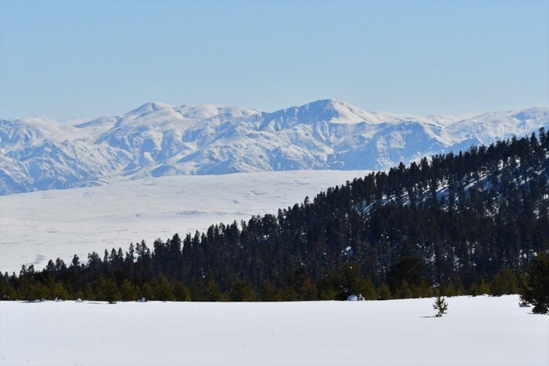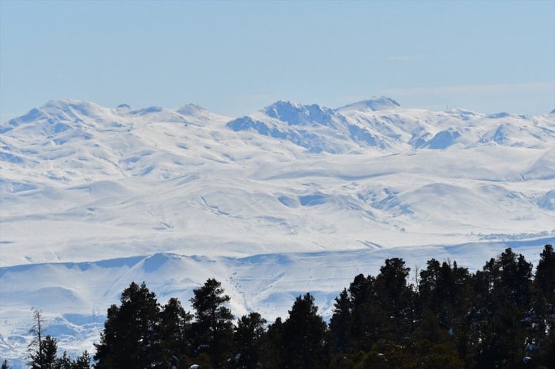 Sarıkamış'ta da kar yağışının ardından beyaza bürünen dağlar güzel görüntü oluşturdu.