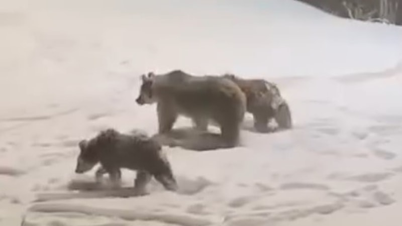 Anne ve yavru ayılar daha sonra gözlerden kayboldu.