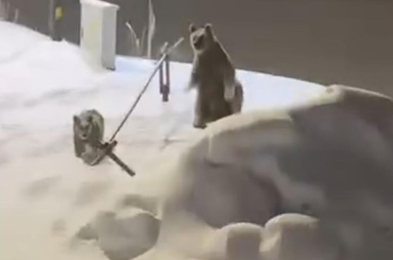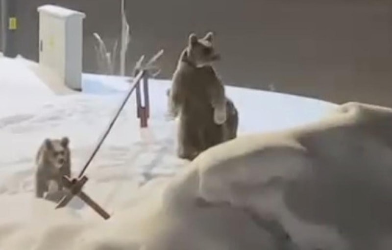 Kars’ın Sarıkamış ilçesinde yiyecek bulmak üzere TOKİ lojmanlarına gelen anne ve yavru ayılar, cep telefonu kamerasıyla kaydedildi.