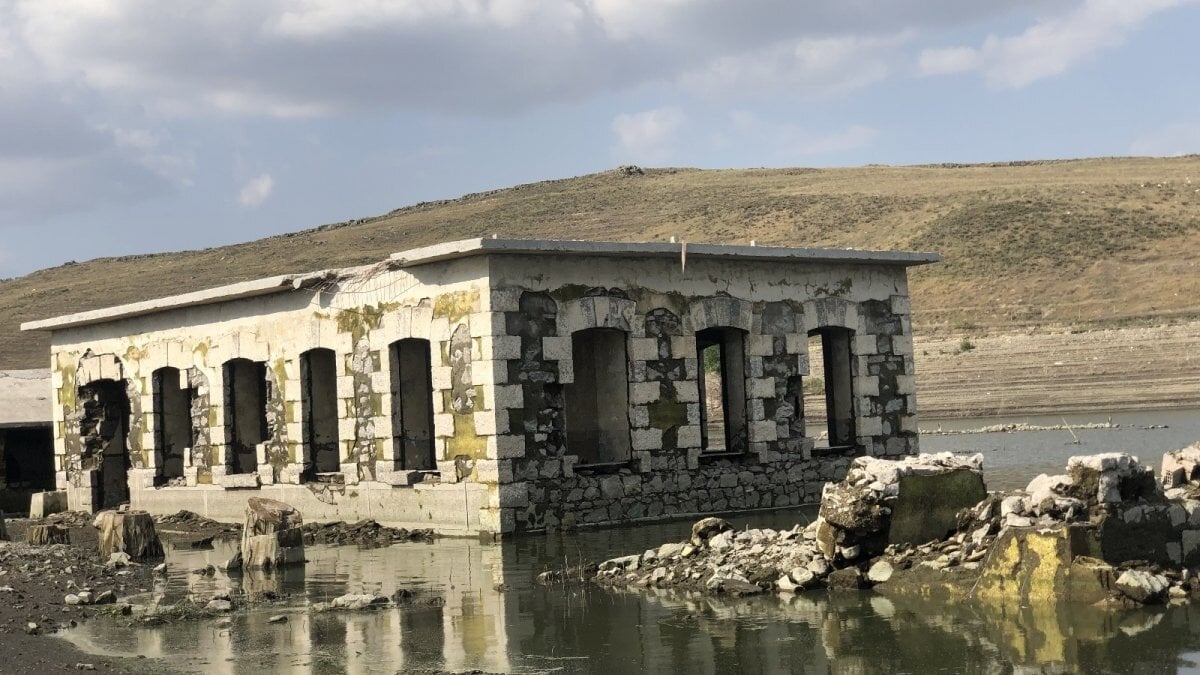 Kars’ta baraj kapaklarının kapatılmasıyla birlikte sular altında kalan köy camisi, köy okulu ve evlerin kalıntıları Kars Baraj Gölü’nün suları sulama yapmak için açılınca yeniden ortaya çıktı.