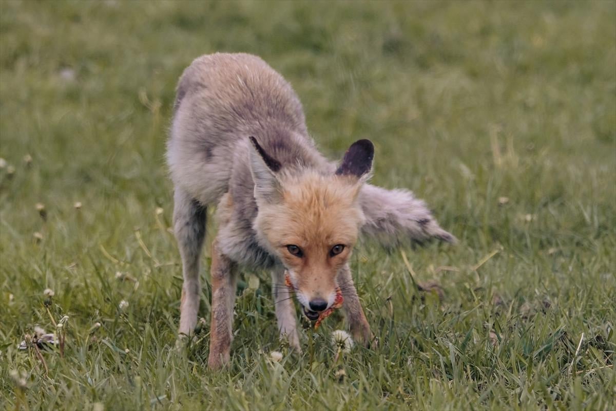 Burada piknikçiler tarafında tavukla beslenen tilki, karnını doyurduktan sonra bölgeden uzaklaştı.