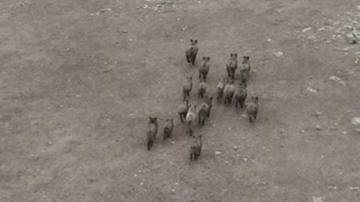 Bölgede haber çalışması yapan gazeteciler tarafından drone ile görüntülenen domuzlar, dağlık arazileri aşıp Sarıkamış karayolunu da geçtikten sonra ormanlık sahada kayboldu.