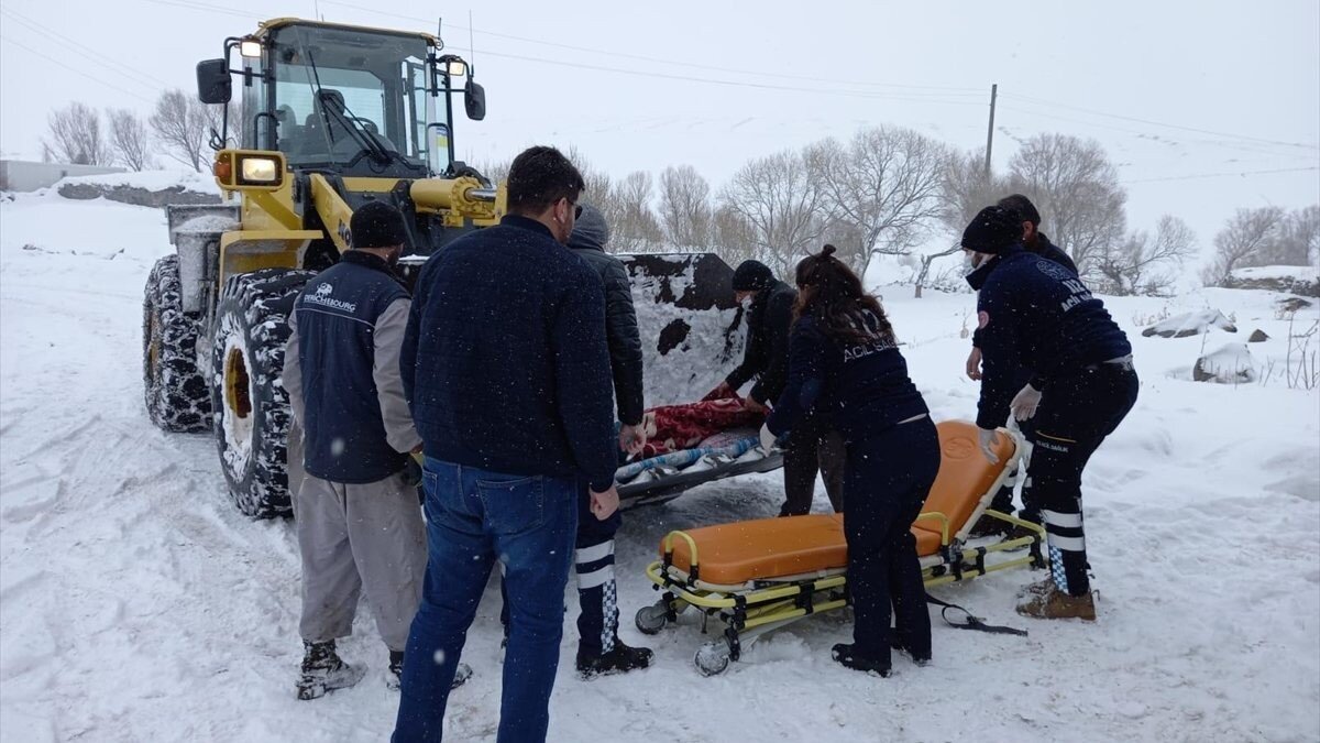 Köyün girişine kadar giden sağlıkçıların bulunduğu ambulans ilerleyemeyince, ekipler, paletli ambulansın bölgeye gelmesinin zaman alacağı düşüncesiyle iş makinesinin kepçesine serdikleri battaniyenin üzerine hastayı koyarak ambulansa ulaştırdı.