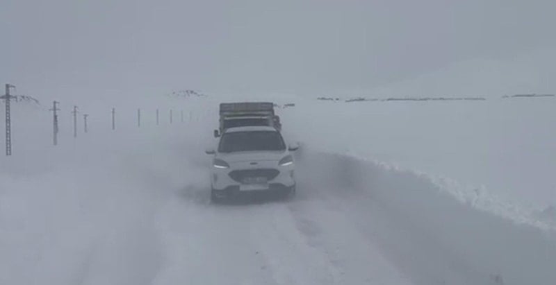 Digor ilçesinde görüş mesafesinin düşmesi ve yolların karla kaplanması sonucu birçok güzergahta araçlar ilerlemekte güçlük çekti.