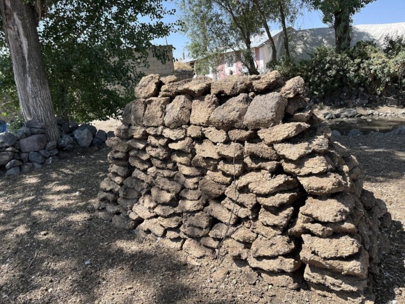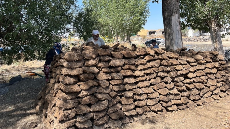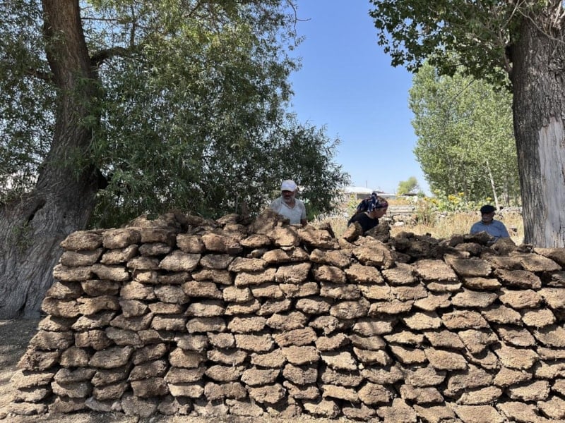Kars'ın yüksek rakımlı köylerinde yaşayan vatandaşlar yüzyıllardır süregelen gelenekle hayvan gübresinden elde edilen tezekle ısınıyor.