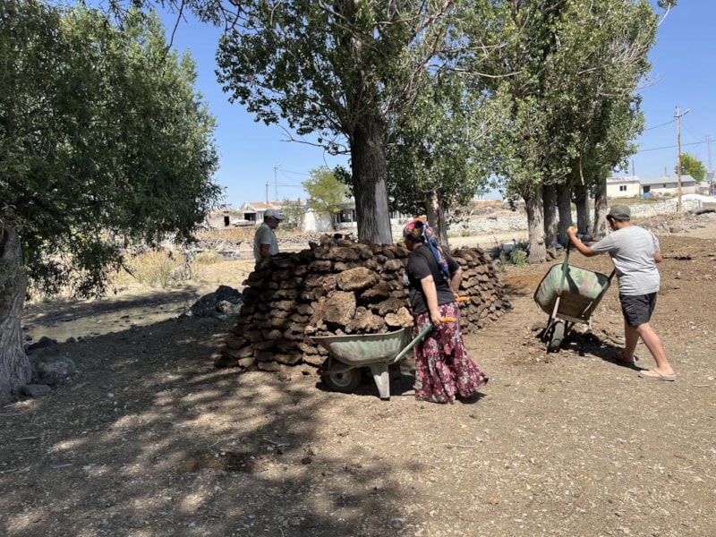 Kars'ın Akyaka ilçesine bağlı Duraklı köyünde yaşayan vatandaşlardan Erol Demirkaya, "Kışa hazırlık yapıyoruz. Tezeklerimizi yapıyoruz. İlk önce kestik sonra kuruttuk, kışlık yakacağımızı hazırlıyoruz. İnşallah kışın ısınacağız." dedi.