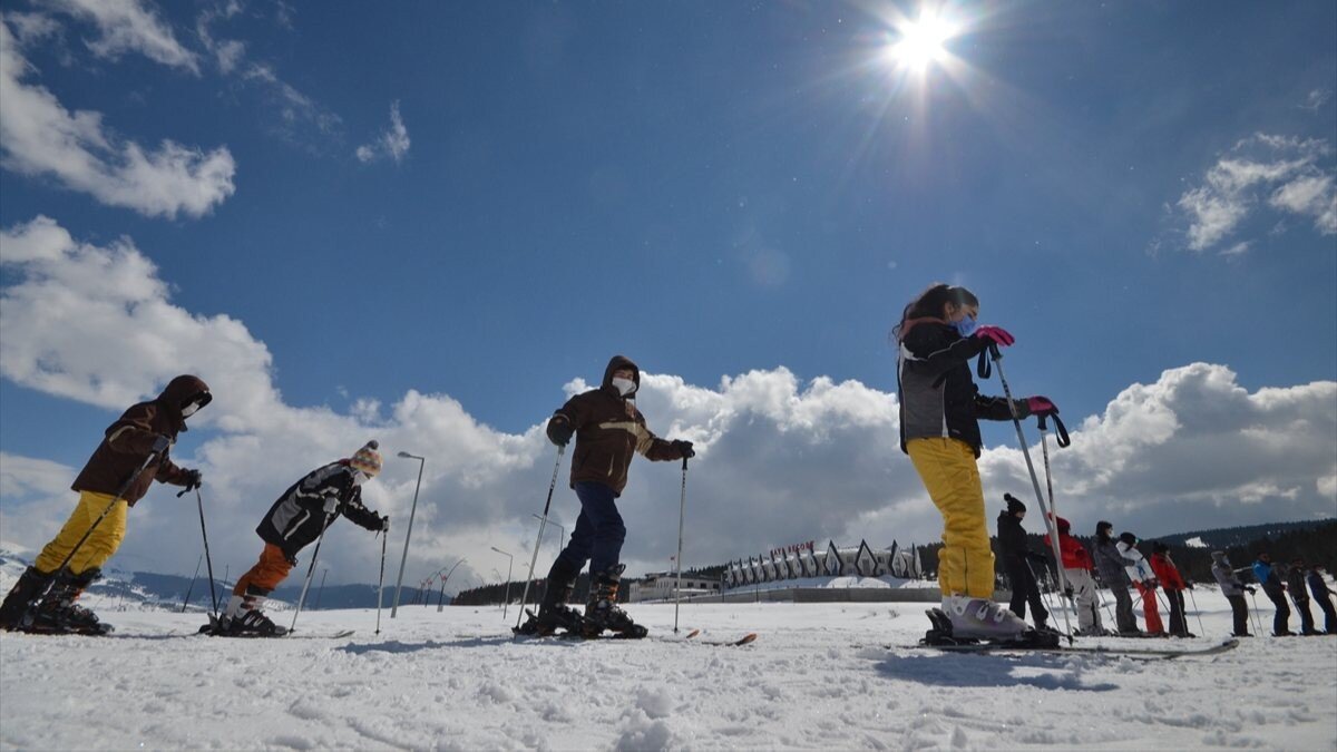 Haftanın belirli günlerinde evlerinden alınarak kayak merkezine getirilen 8-15 yaş aralığındaki 40 çocuğa, deneyimli antrenörler eşliğinde kayak eğitimi veriliyor.