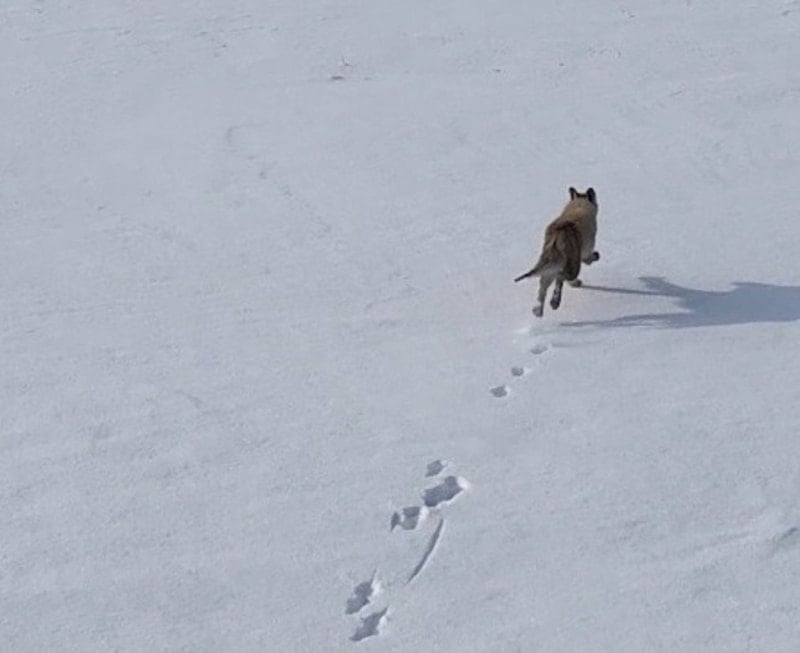 Bir süre sonra drone'un kendisini takip ettiğini anlayan tilki, hızla koşmaya başladı. Gökyüzündeki cismi av sanan tilki, kısa bir kovalamacanın ardından inine girerek gözden kayboldu.