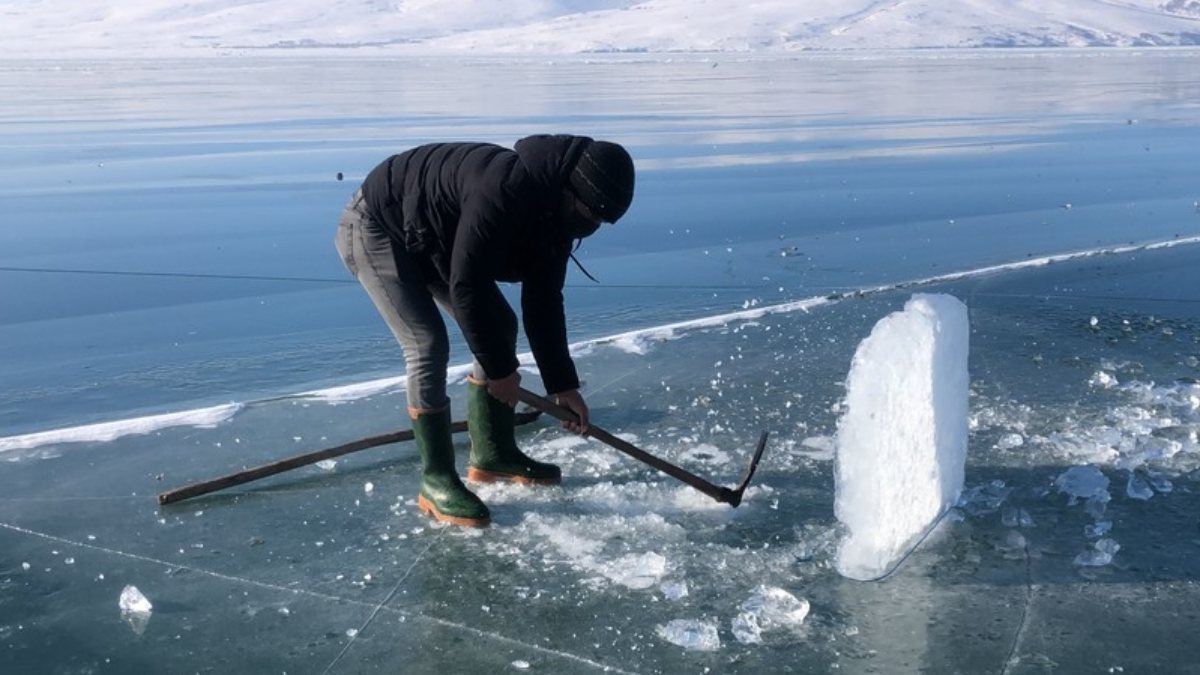 Kazma küreklerle buzları kırıyoruz. Tamamen el emeği, bilek gücüyle bu işleri yapıyoruz. Ekmek aslanın ağzında bizim ekmeğimiz de buzun altında. Gölden, tatlı su kefali, şafak ve sarıbalık çıkıyor. Bunları da 20 ile 10 TL arasında değişen fiyatla satıyoruz.