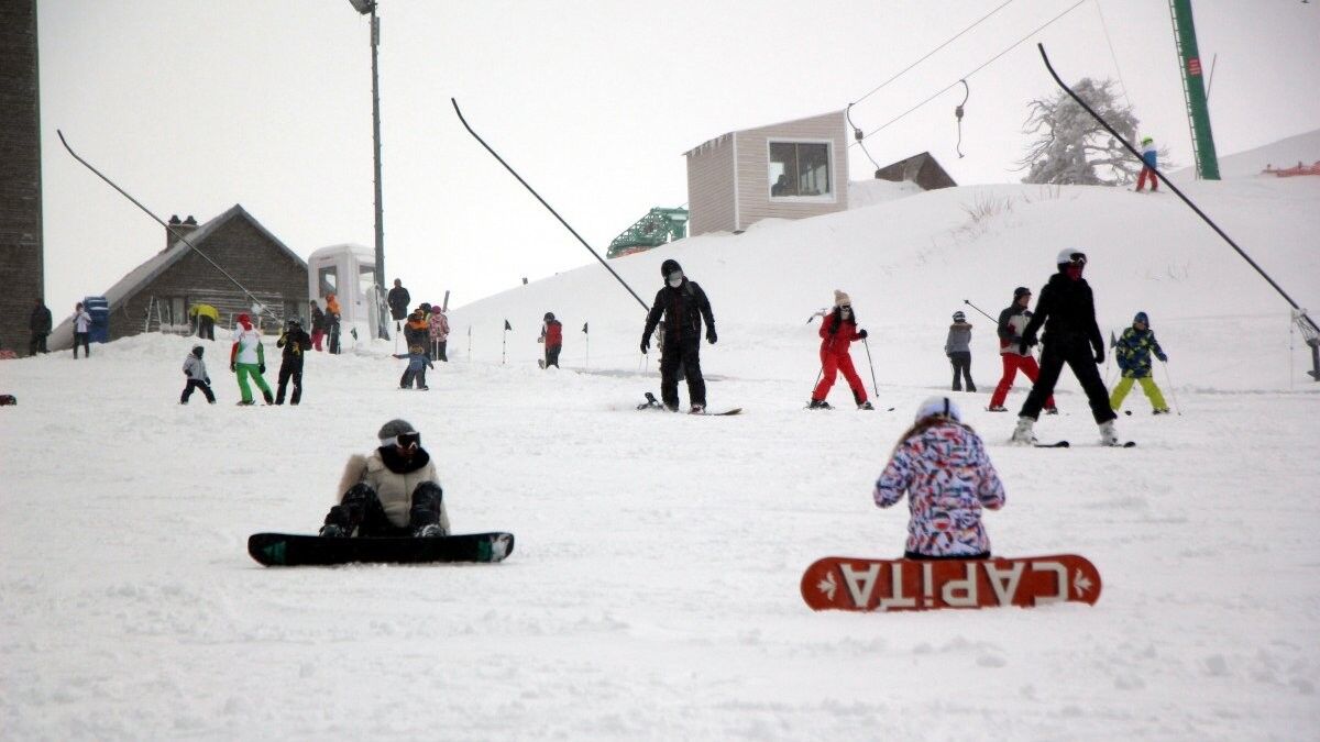 Yarıyıl tatili için gelenler, Köroğlu Dağları'nın zirvesinde kayak ve snowboard yapmanın keyfini çıkardı.