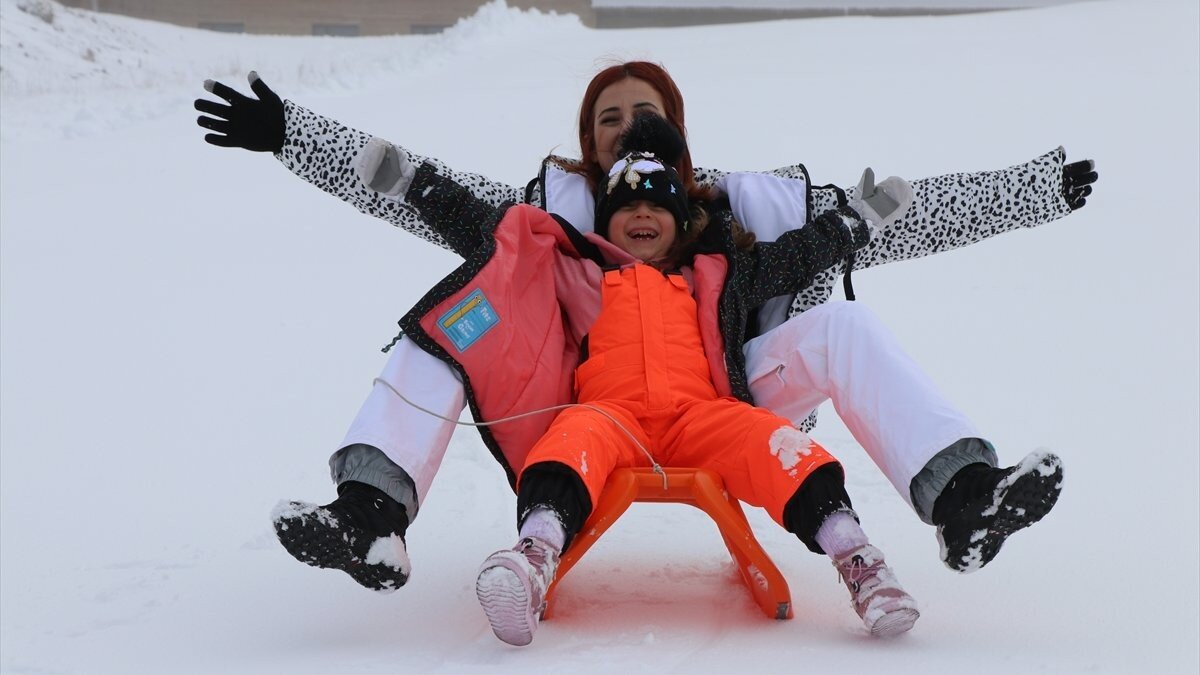 Günübirlik tatil için Kartalkaya'ya aileleriyle gelenler, kızakla kayarak yürüyüş yaparak ve kar topu oynayarak keyifli vakit geçirdi.