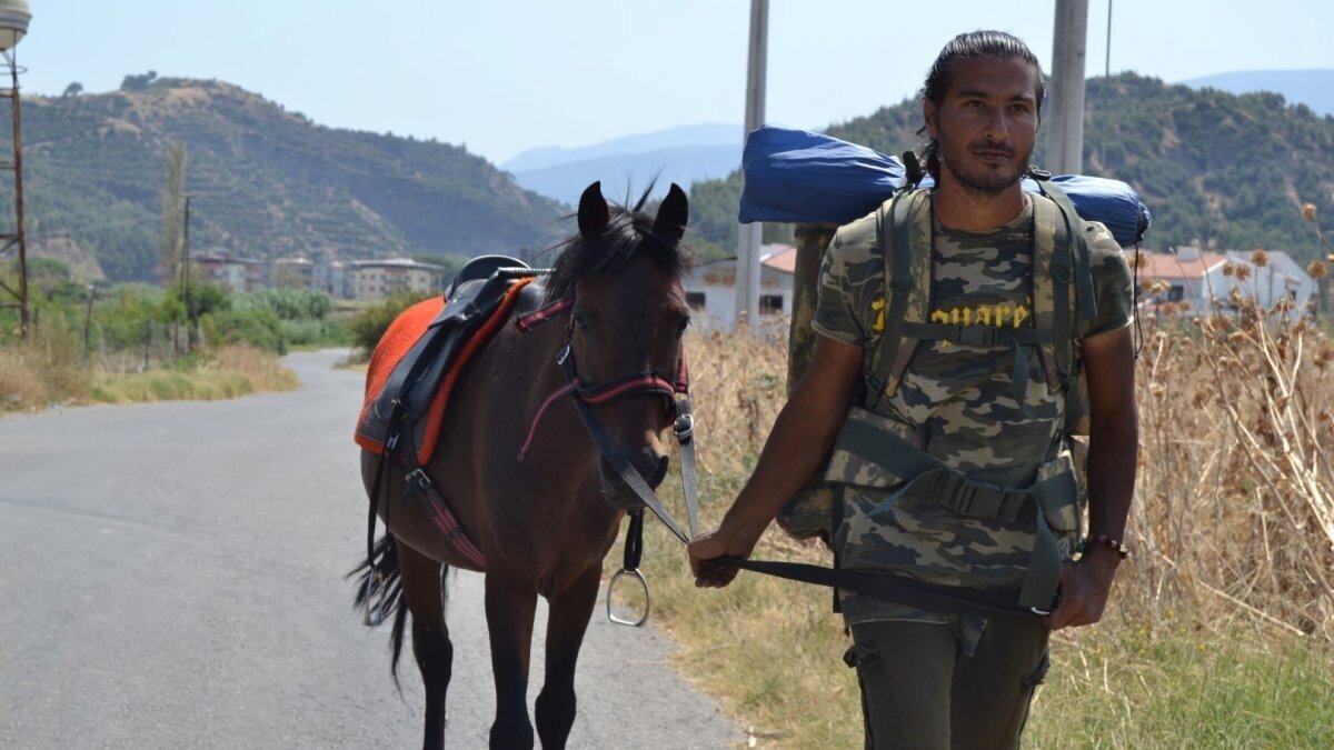 Doğaya ve hayvan haklarına saygı yürüyüşü hayalini gerçekleştirmek için İzmir’den at alan ve Kaşif ismini verdiği atla Batman’a yürümeye başlayan Yüksel Atalay (38), Manisa’nın Salihli ilçesinde mola verdi.