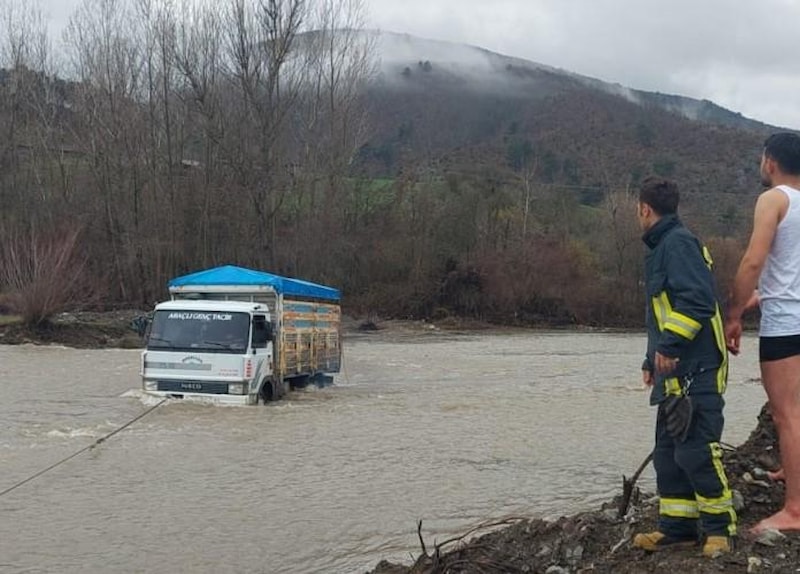 Kastamonu'nun Araç ilçesinde araçları ile dereden geçmek isterken sele kapılan 3 kişi ekipler tarafından kurtarıldı.
