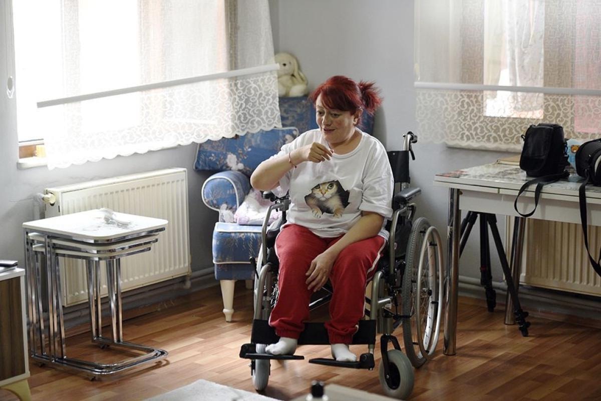 Cam kemik hastalığı nedeniyle 3 yaşında yürüme yetisini kaybeden Demir, 4 yıl önce bakıma muhtaç bir kediyi sahiplendi.
