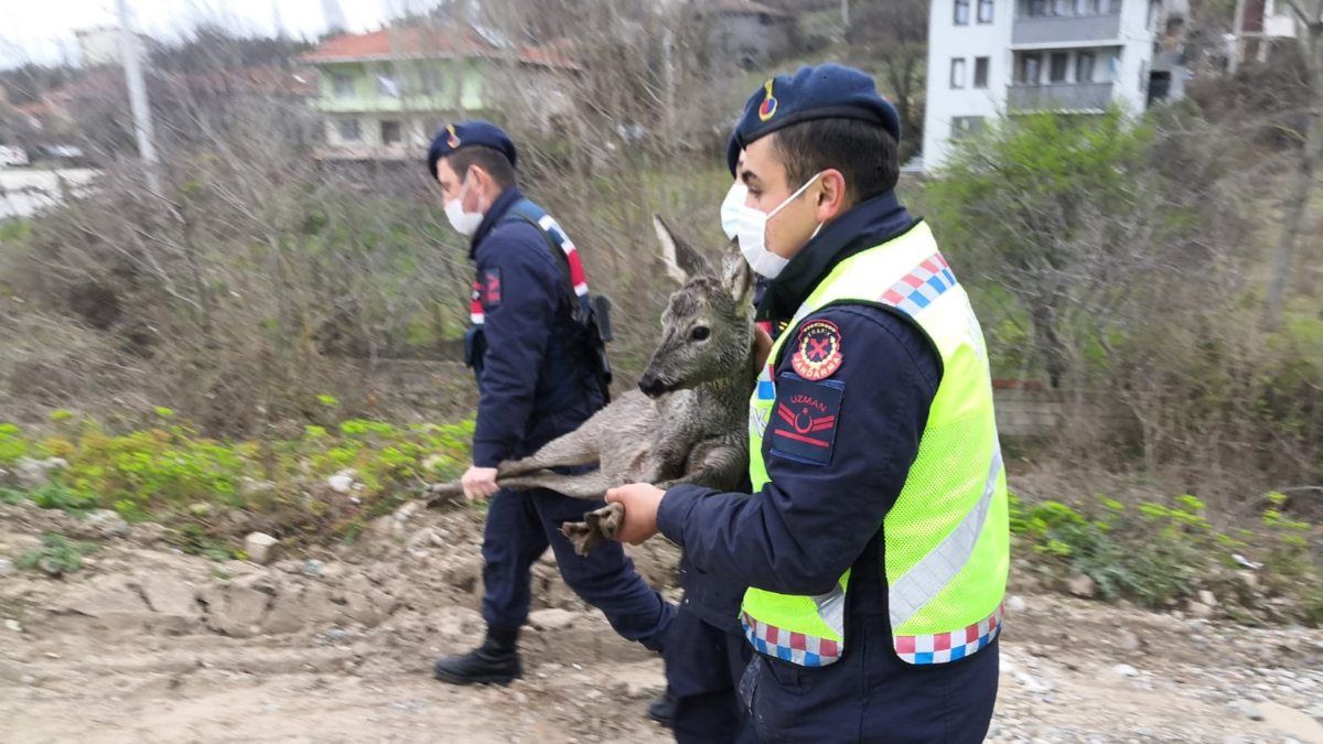 İhbar üzerine olay yerine gelen Cide İlçe Jandarma Komutanlığı ekipleri, çaya girerek suyun içerisinden karacayı kurtardı. Daha sonra jandarma ekipleri, yaralanan karacayı veteriner hekime götürerek tedavi ettirdi.