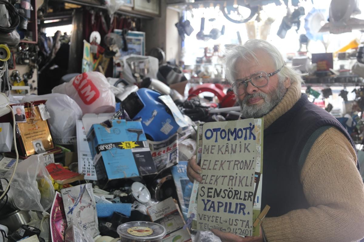 Torunlarımı çırak olarak alamıyorum çünkü dükkanımda yer yok. Bana yetecek kadar alan var. Bu durumdan şikayetçi değilim, çünkü lazım olan parçalar. Yeri geliyor bir oyuncak araba tekerleğini süpürgenin ayaklarına bile takıyorum. Böyle para kazanıyorum. Başkasına göre 'Ne gerek var' denen malzeme bana çok ihtiyaç oluyor. Yeri geliyor ufacık bir parçadan çok paralar kazanıyorum. Burada rahat ve huzurluyum. Böyle bir yer olmasa da yaşamam imkansız, en uygunu benim için böyle bir yer. Saç kurutma makinesi, düzleştirici, mikser, blender, robot gibi şeyleri yapmak da benim için büyük bir zevk. Yerine göre bin TL'lik hesap çıkartılan bir işi ben 50, 100 TL karşılığında yapıyorum. Gelen müşteriler de çok memnun kalıyorlar.