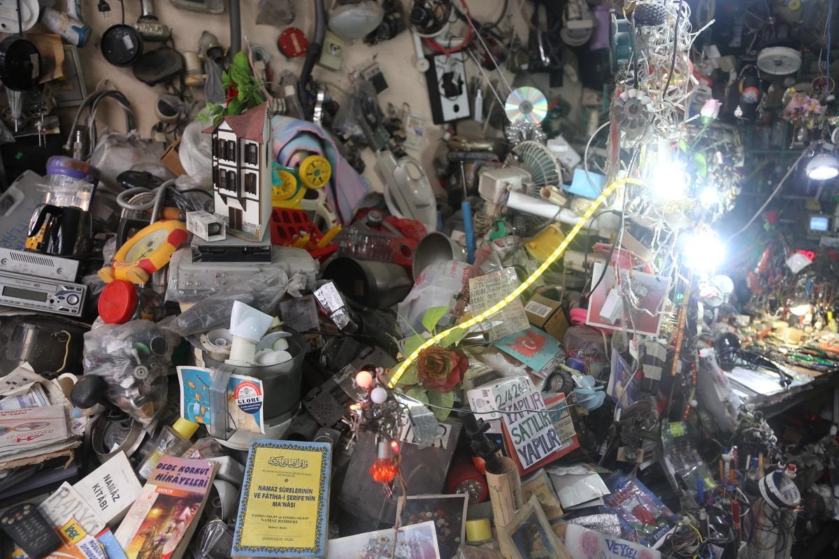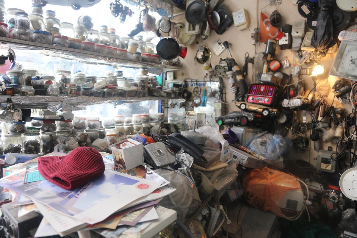 İş yerinde adım atacak yer bırakmayan eşyalar, sadece Veysel Karakaya'nın çalışabileceği kadar bir boş alan bıraktı. Karakaya ise sahipleri tarafından uzun yıllardır alınmayan eşyaların parçalarını tamir ettiği elektronik cihazlarda kullanıyor.