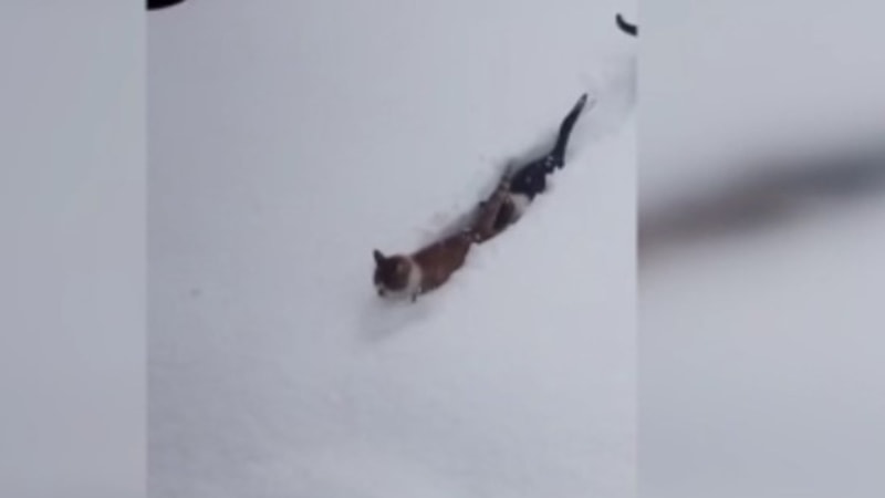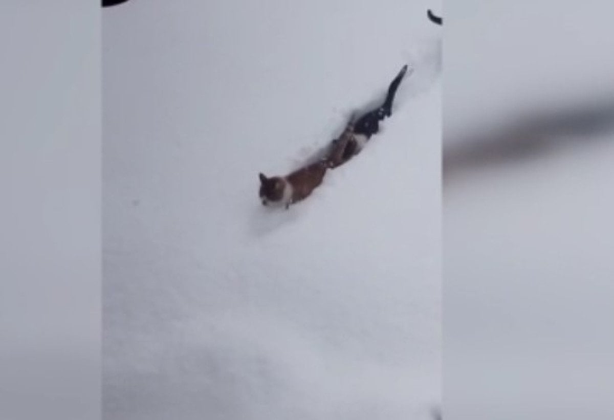 Kastamonu’nun Çatalzeytin ilçesine bağlı Yukarısökü köyü Tarakçılar Mahallesi’nde etkili olan yoğun kar yağışı, ilginç ve sıcak bir ana sahne oldu. Köy imamı Rıfat Şahin, köydeki son durumu cep telefonu kamerasıyla kayda aldığı sırada kedilere seslendi.