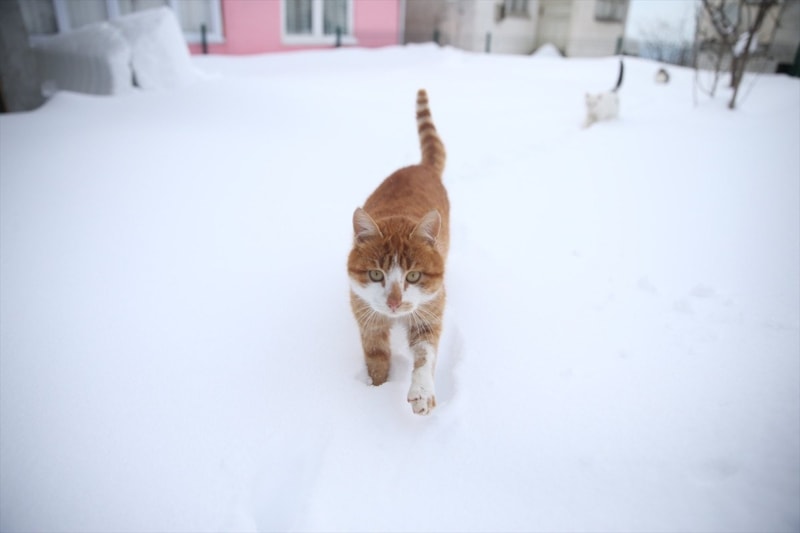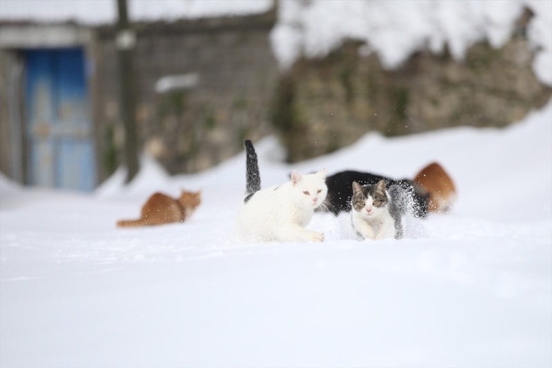 Yaz aylarında yaklaşık 150 hanenin bulunduğu köyde, kış mevsiminde bu sayı 15’e kadar düşüyor. Karın bir metreyi bulduğu günlerde yiyecek bulmakta zorlanan kediler, imam lojmanının önünde toplanıyor.