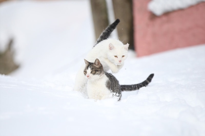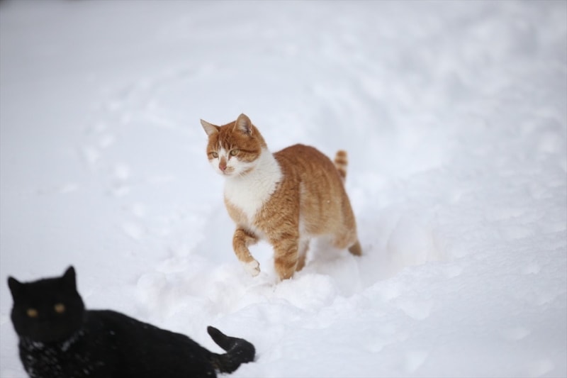 Şahin, kedilerin bu davranışının tesadüf olmadığını belirterek, “Sabah namazına giderken ya da lojmanın kapısını açtığımda kedilerin aynı şekilde geldiğini sık sık görüyorum. Kar izleri kapanınca bu anı kayda almak istedim.” dedi.