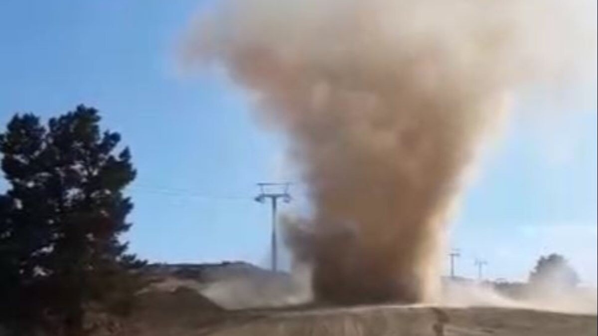 Kumda giderek büyüyen hortum, işçilerde paniğe neden oldu. Hortumun, iş makinelerinin üzerine doğru gelmesi üzerine işçiler, bölgeden uzaklaştı.