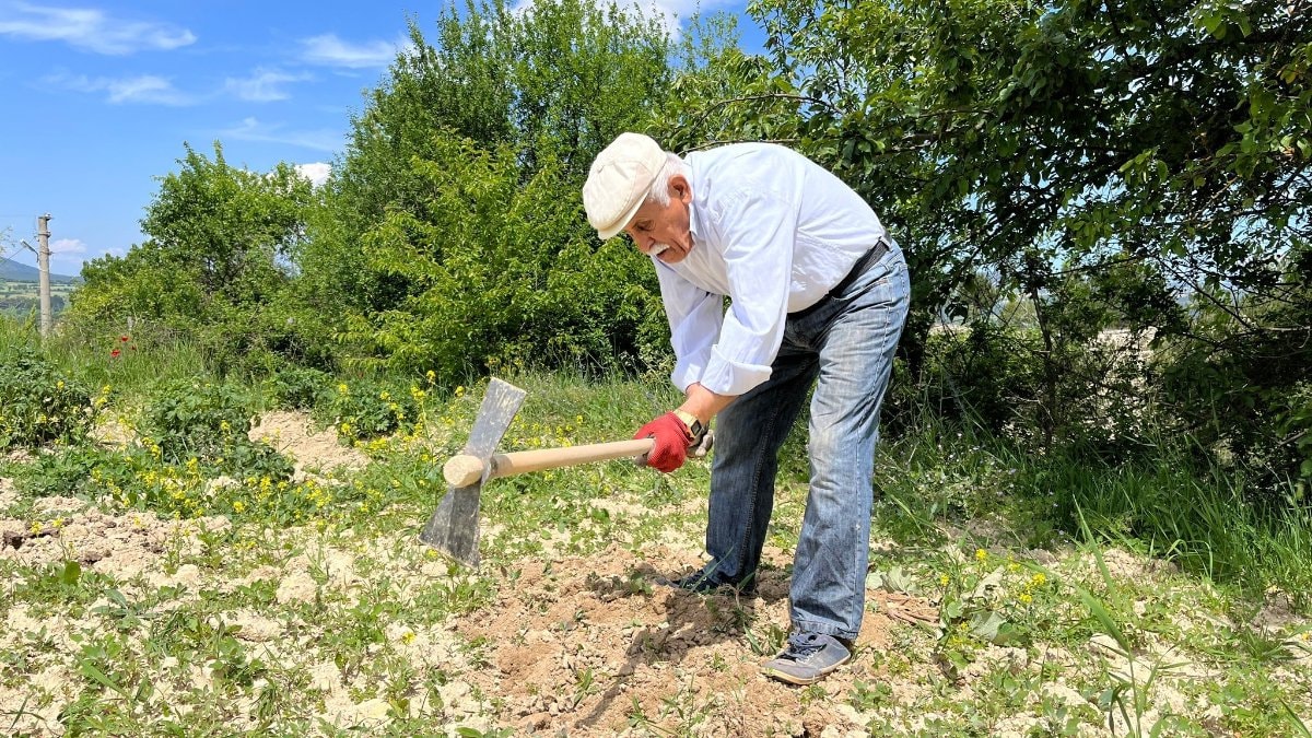 Yaşına rağmen tarlada çalışmaya devam eden Ciğerci, çalışma azmi ile gençlere taş çıkartıyor.