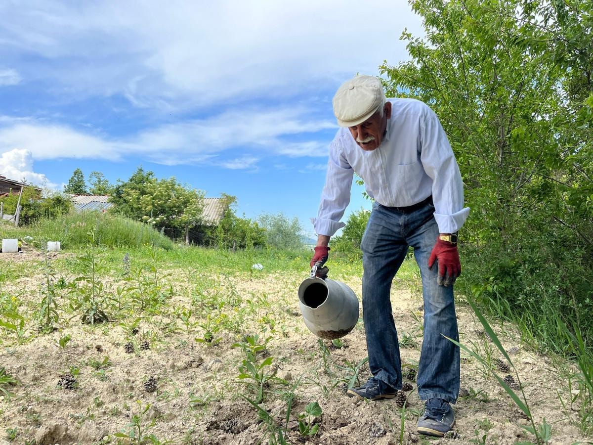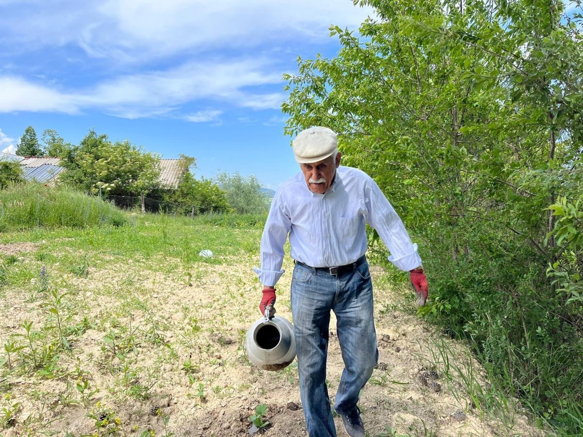 Ben 80 yaşındayım ama çalışmadan duramıyorum. Gördüğünüz bu alana karpuz, kabak ektim. Sürekli sulayıp çapalıyorum. Maalesef günümüzde bunu gençler yapmıyor. Gençlere bizlerin örnek olmamız lazım. Gençler de örnek alıp oturmak yerine çalışmaya yönelmeli.