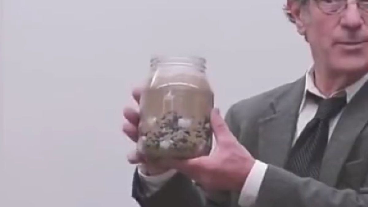 Bunun üzerine profesör içi tenis topu, çakıl taşı, kum ve kahve dolu kavanozu iki eli ile kaldırarak sınıfa gösterir ve şöyle der: