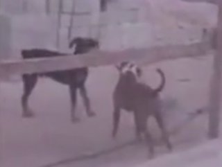 Sosyal medyada, iki köpeğin birbiriyle atıştığı anlar paylaşıldı.