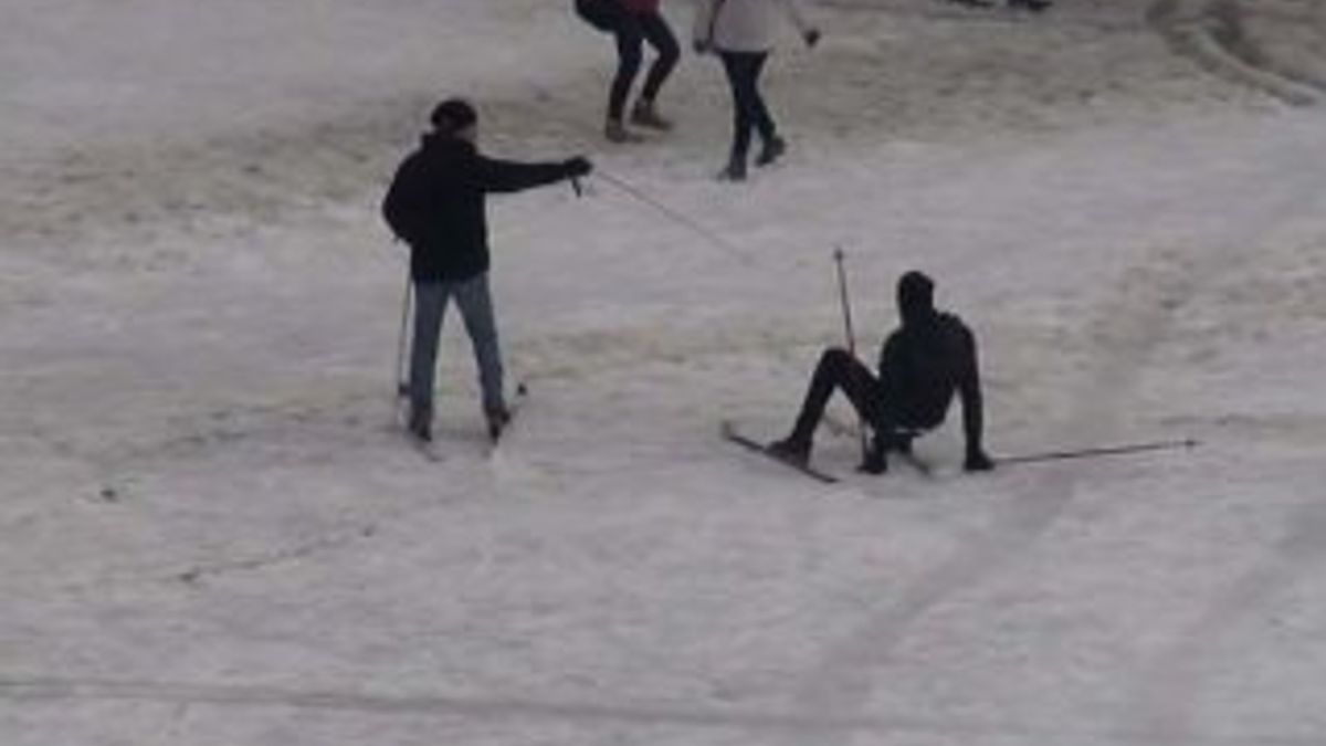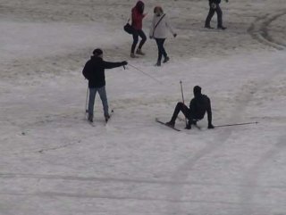 Beyoğlu'nda ise ilginç görüntüler vardı. Kayak takımını alan üç kişi Taksim meydanında, bir kişi de Beyoğlu sokaklarında kayak yaptı.