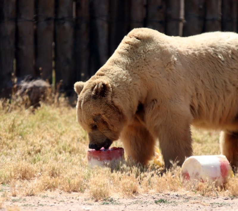 Günün belirli saatlerinde bakıcılar tarafından hazırlanan meyveli buzlu kokteyller ile serinleyen ayılar, keyifli zaman geçiriyor.